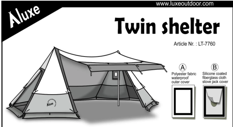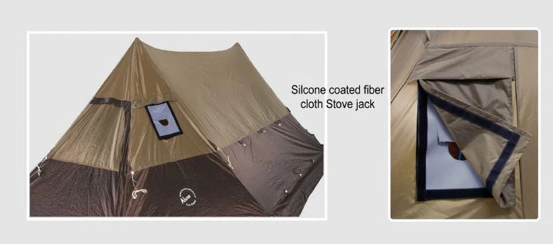 On one end, the Luxe Twin Shelter is equipped with a closeable stove jack, to be able to install the pipe of a portable wood stove. There are two vents are placed over the doors, to manage the airflow and allow for easy regulation of the warmth within the tent.