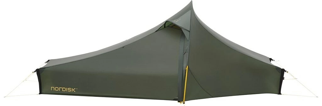 The Nordisk Telemark 1LW is a very easy and fast tent to pitch. Stake out the four corners, stick in the tent pole and your done. For added comfort and ventilation you can pitch the vestibule door open as a large awning using a walking stick, stick or camera tripod. If in the mountains I would stake out the extra guy lines as well for added security.