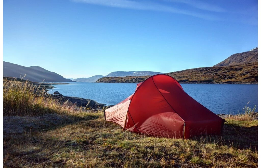 Nordisk Telemark 1LW is light, easy to pitch and roomy enough for most people under most circumstances. I am 190cm tall and while I can’t say the Telemark is a palace, it is certainly big enough for me. But here is the caviat: I don’t mind my feet or hair touching the inner tent. This doesn’t bother me much. Where I do find this to be bothersom is when there is a lot of moisture in the air and a lot of condensation in my tent. Than I would prefer a larger tent where I am not mushing the inner. With that said, at 850grams the Telemark 1LW withstands pretty much anything the mountains can throw at it, and I have myself experienced some pretty heavy winds in the Telemark. When it’s slightly breezy, the Nordisk telemark is a great tent, as the wind finds it’s way under the tent through its catenary cuts on the front and back end, and with the top vent, creates just enough ventilation where condensation is kept to a minimum. On the flip side, on completely still nights, wet ground and heavy breathing, creates a kind of trapped blanket of condensation. So my recommendation is to keep the tent in more open spaces where breeze can find it. Of course I would recommend this for any tent, as all tents will be condensation hell if the conditions are ripe for that.
