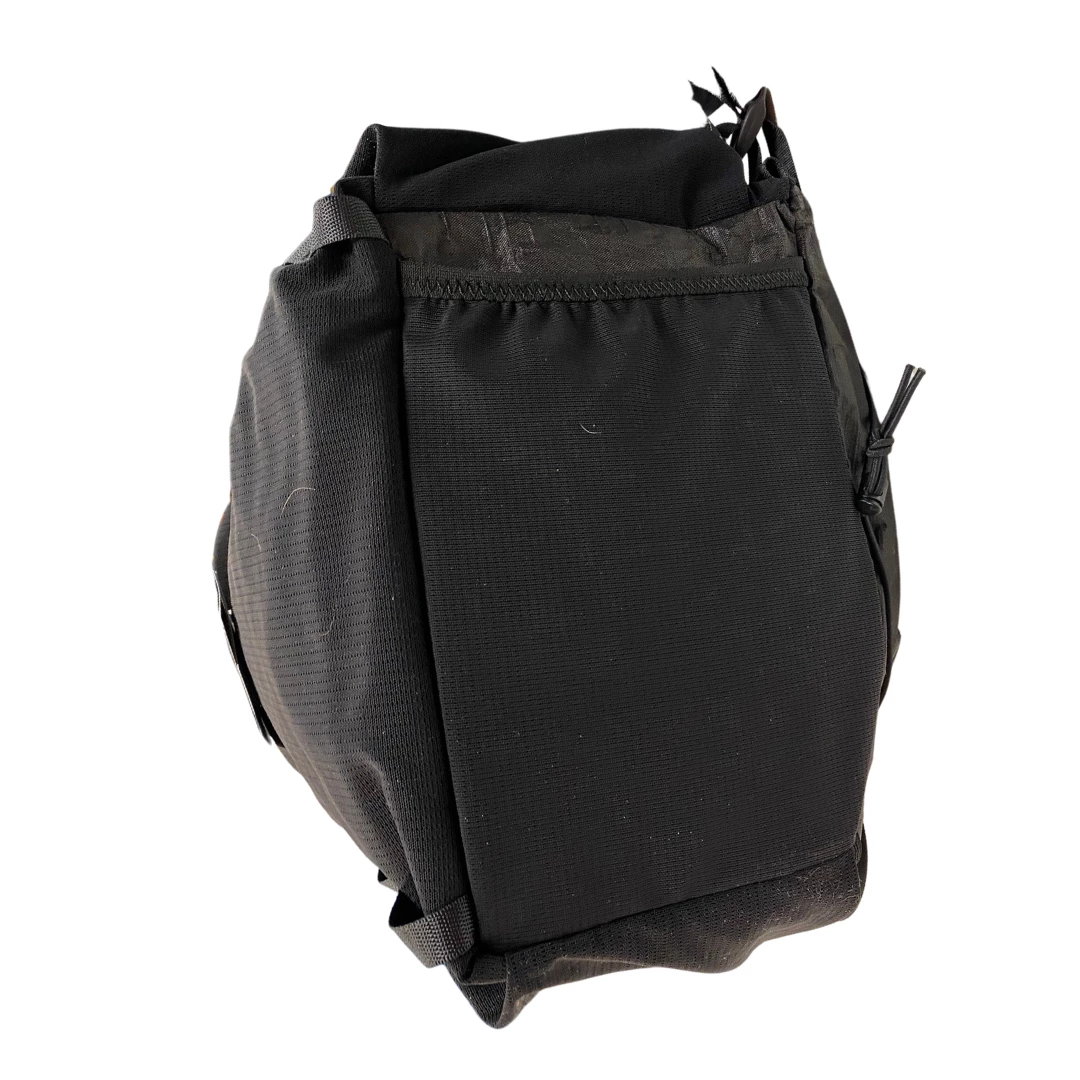If you want to go fast and hard, the Rapa is for you. Meant for minimal weight with maximum flexibility the Rapa comes with a large 30-45L roll-top pack. And also as about 10 liter of external stretch pockets. This pack has 3 large pockets on the outside – 2 1,5 liter side pockets that are big enough for any 1 liter bottle or more, or a tent. These pockets are also easily accessible while walking, by just reaching back. Unlike the Illforsen, these side pockets are completely seperated from the Large front pocket. Speaking of the large front pocket, did we mention this is large? We can’t think of a larger front pocket on any backpack as far as sheer amount of space is concerned. To top it all off the Rapa has a small bottom pocket that is perfect for rain gear or candy.. Whatever you prioritize on long, hard hikes.